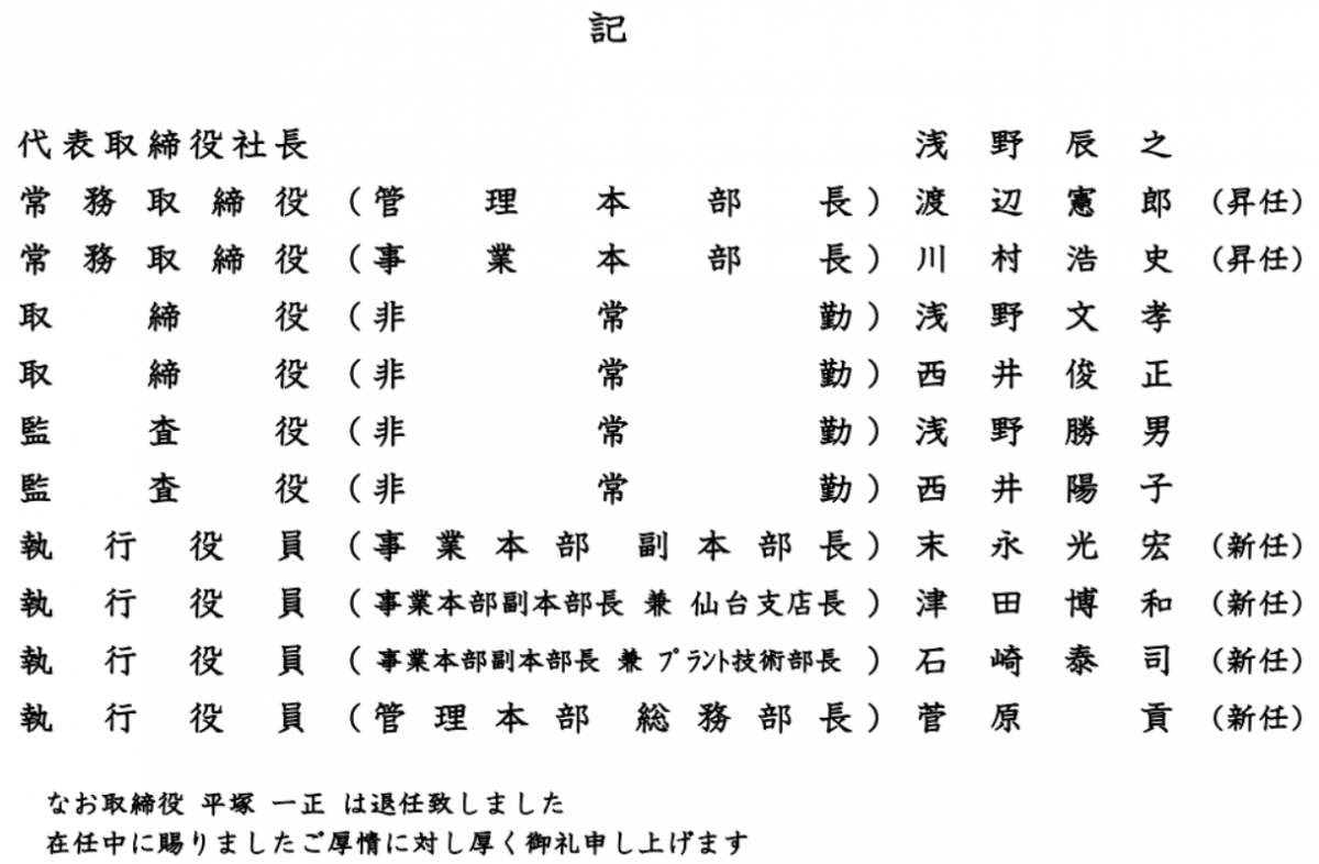 2025年11月14日に開催されました定時株主総会並びに取締役会において、下記の通り 役員が選任され就任いたしましたので、何卒倍旧のご指導ご鞭撻を賜りますようお願い 申し上げます。